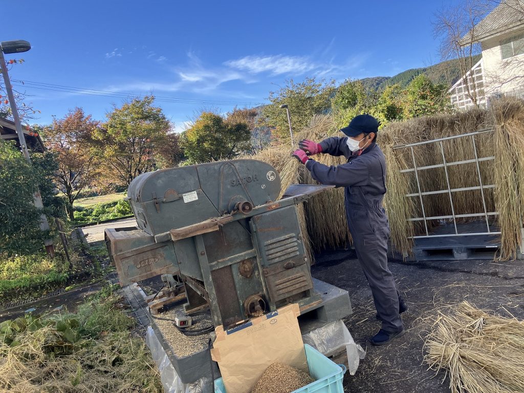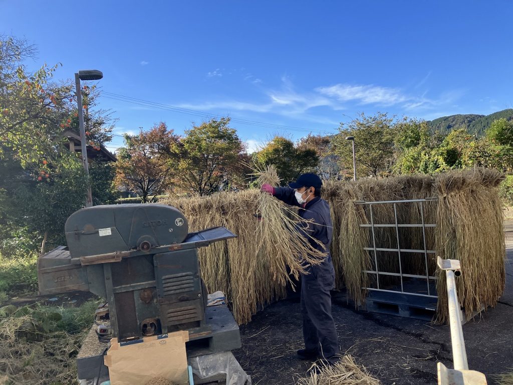 今年は10月中旬に稲刈りを終え、先日は秋晴れの中で脱穀を行いました。