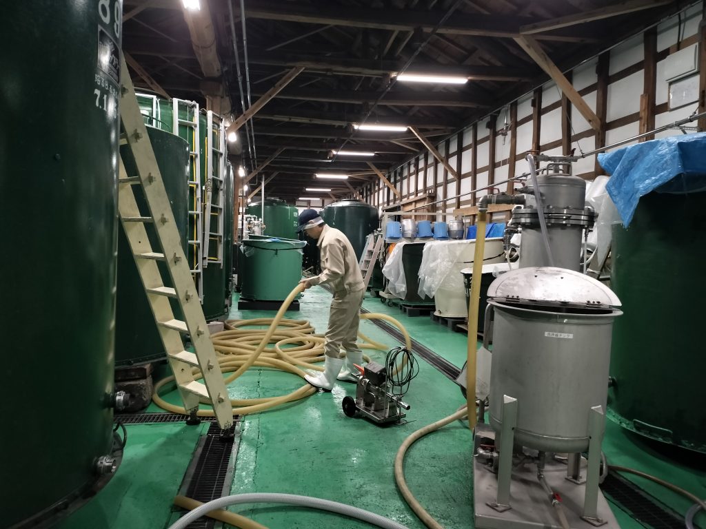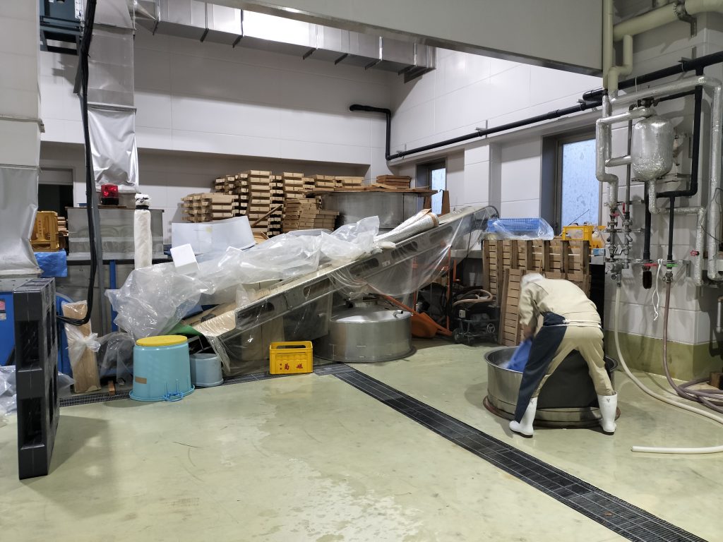 吟醸酒の仕込みで使われていたさまざまな用具や機器が、次々と片付けられていきます。