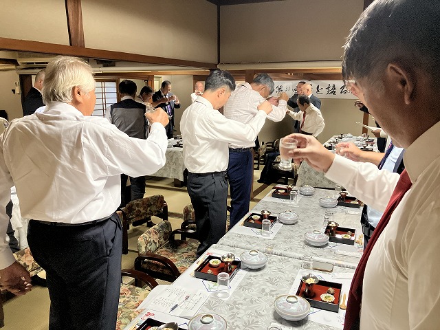生産者幹事代表、JAみのり代表、そして弊社社長の柳荘司がご挨拶を申し上げ、乾杯は「黒吟」で。