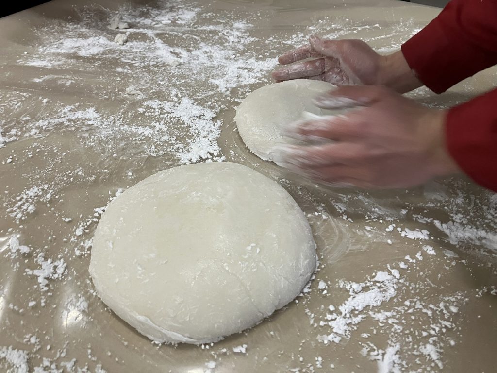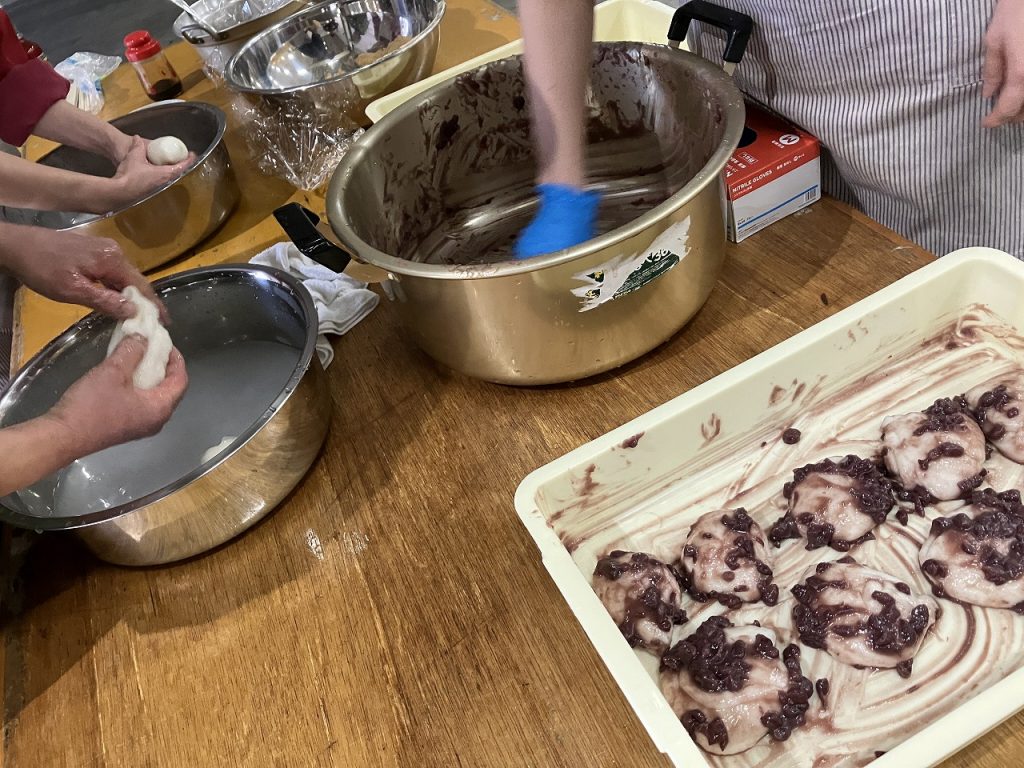 注連縄の付け替えや、営業最終日の社内餅つき。