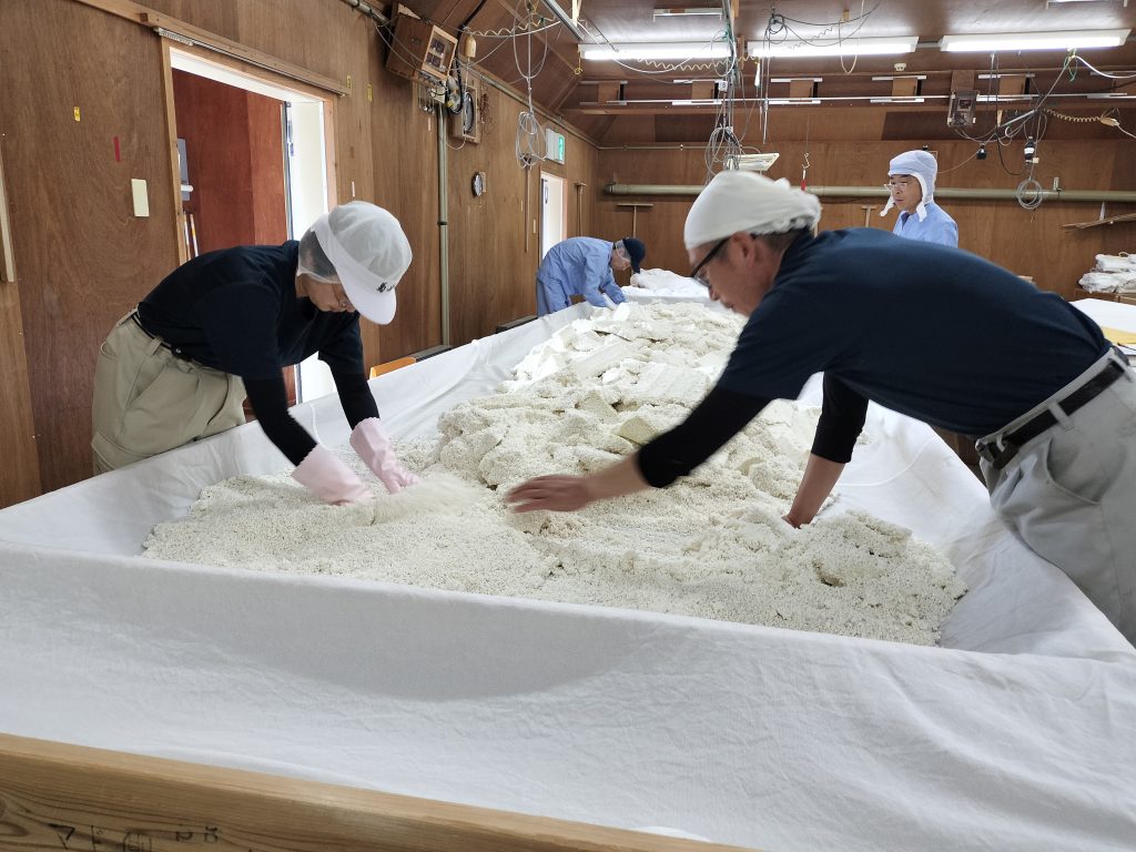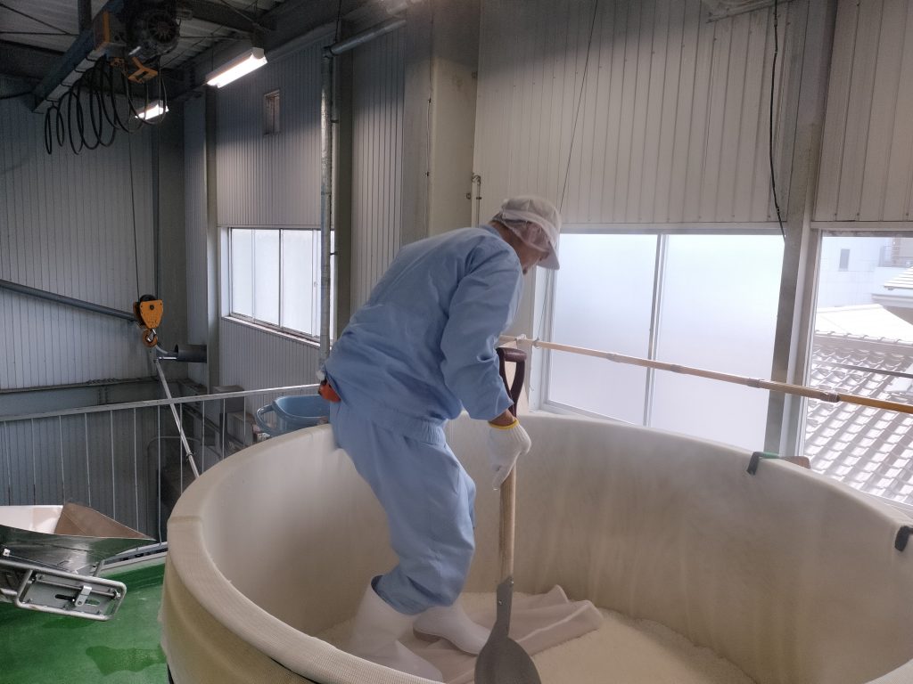 この時期は気温も高く、麹室で少し作業をするだけで汗びっしょりになってしまいます。