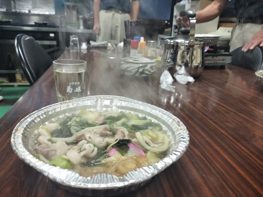 夕食には、鍋焼きうどんが登場。肌寒くなってきたこの時期にぴったりの温かい一品で、体の芯からほっと温まります。