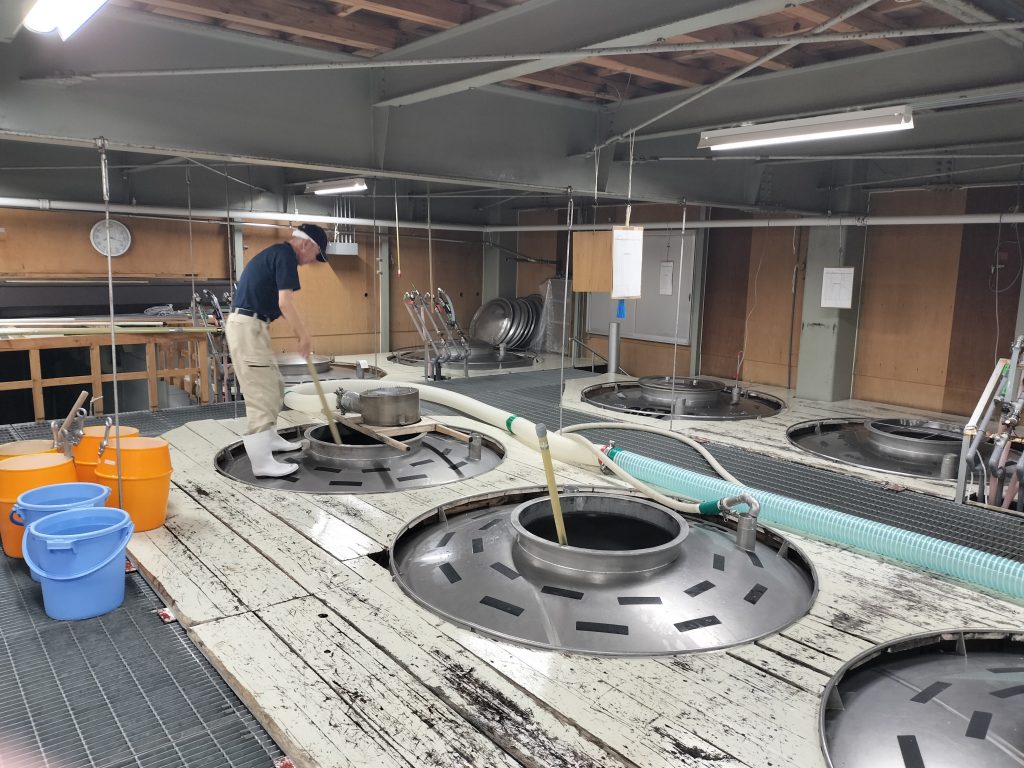 タンクの間を歩くと、あたりにはお酒の甘く華やかな香りが漂い、蔵の中にも活気が満ちてきました。
