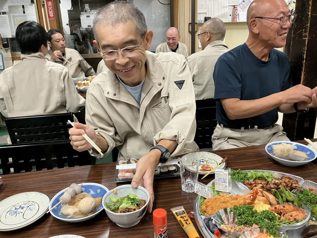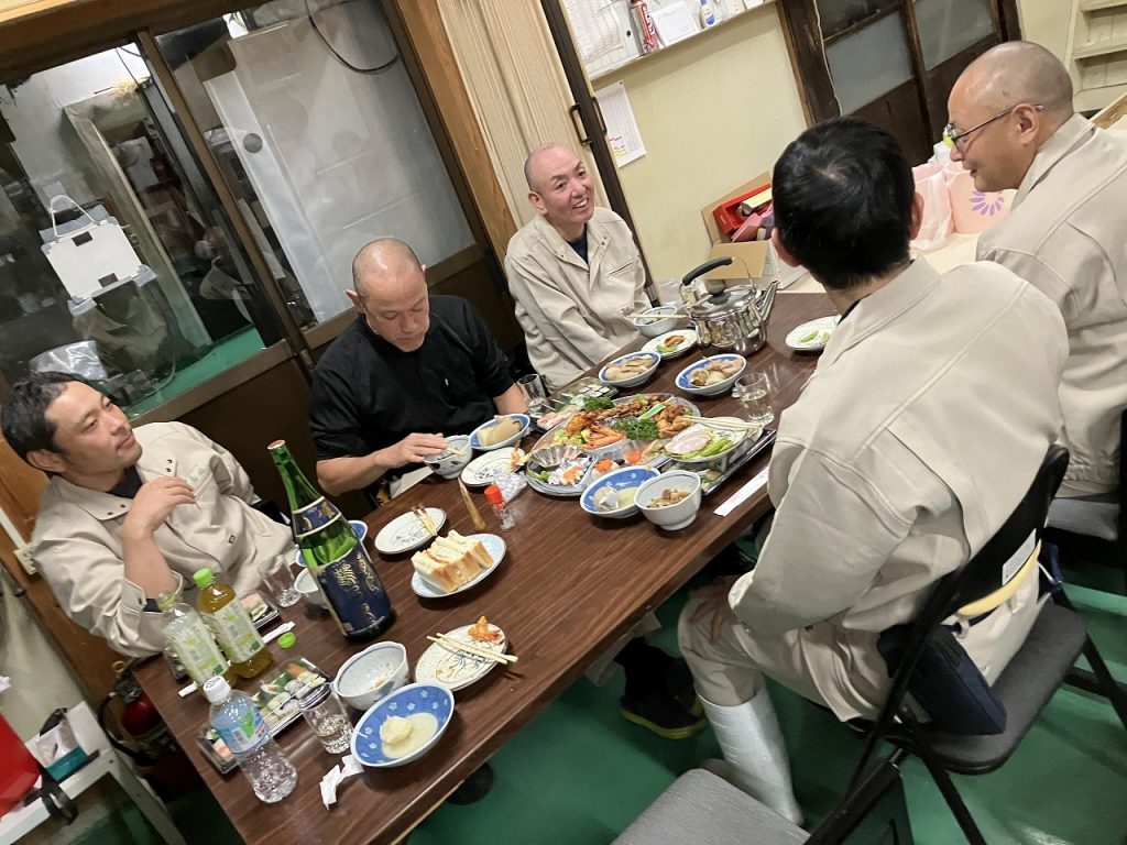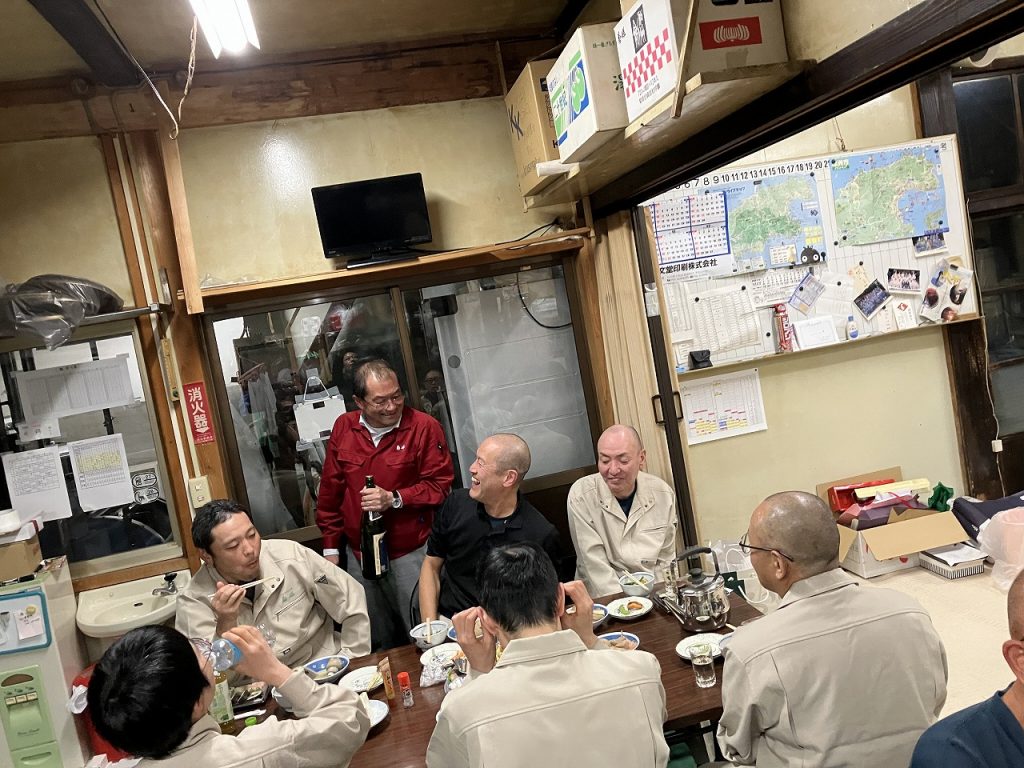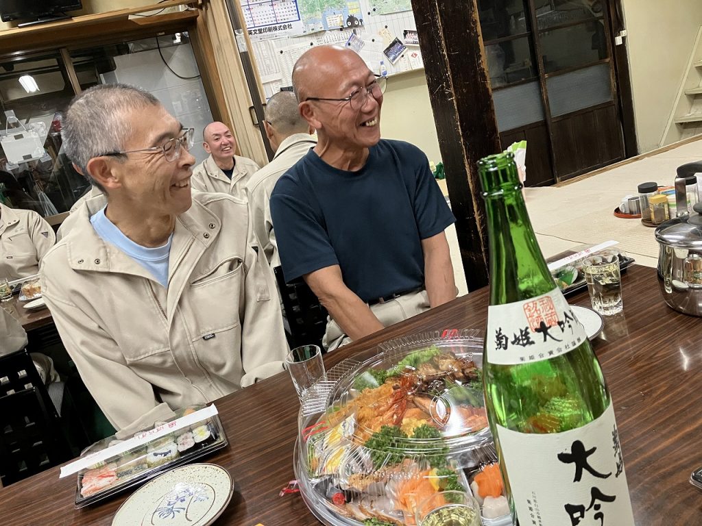 その日の夜には、社長や営業のメンバーも加わって「甑起こし」の宴会が開かれました。