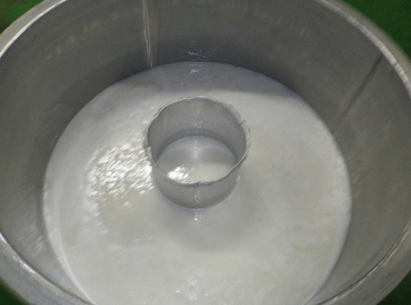 まずは「山廃酒母」と同様に、仕込みの約2時間前に酒母タンクに水麹を作成します。
